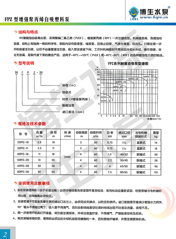 博生牌FPZ型直聯(lián)式塑料自吸泵
